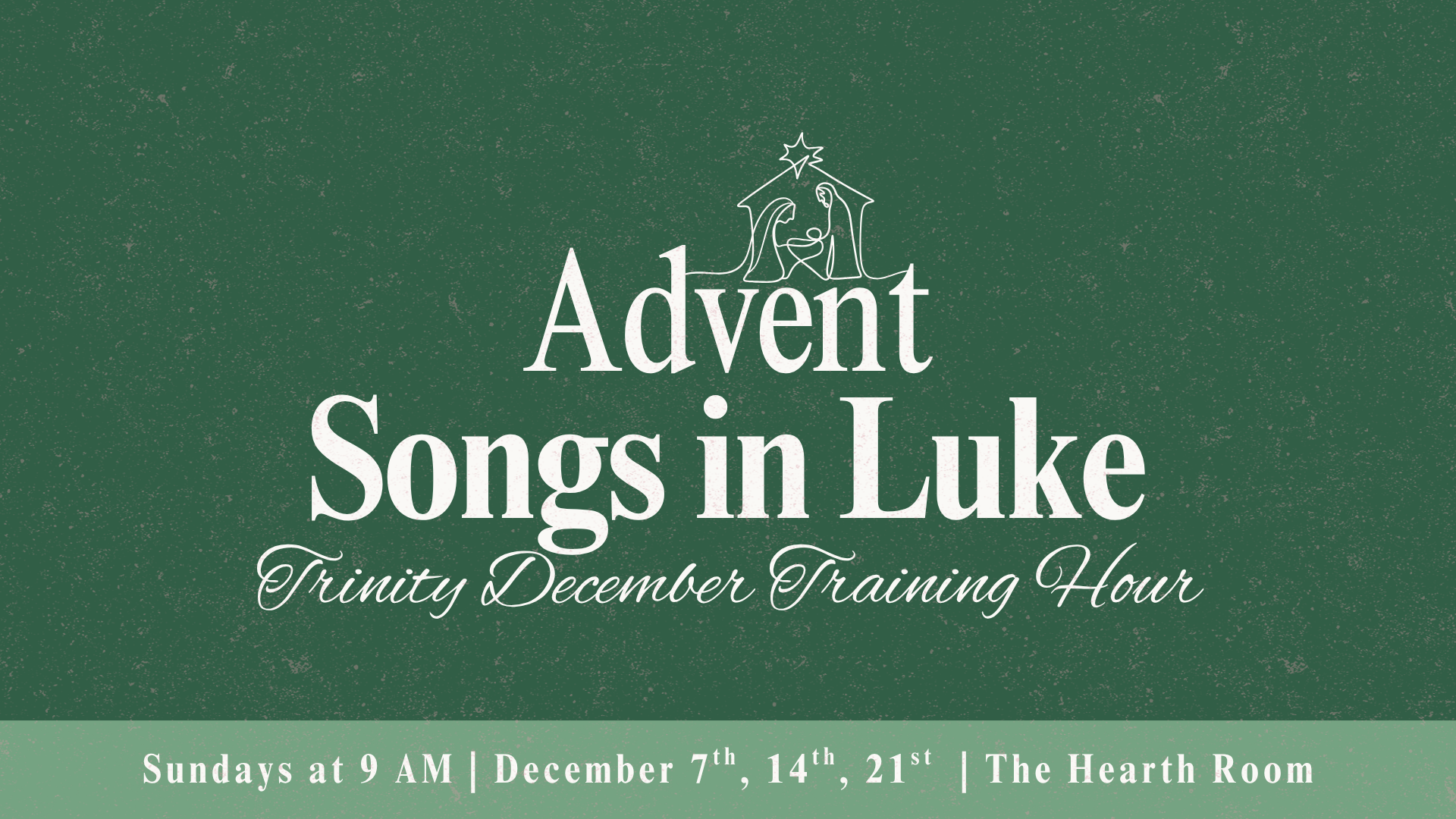 All adults will meet in the Hearth Room for one class exploring “Advent Songs in Luke." TrinKids & Youth Sunday School will meet as usual.